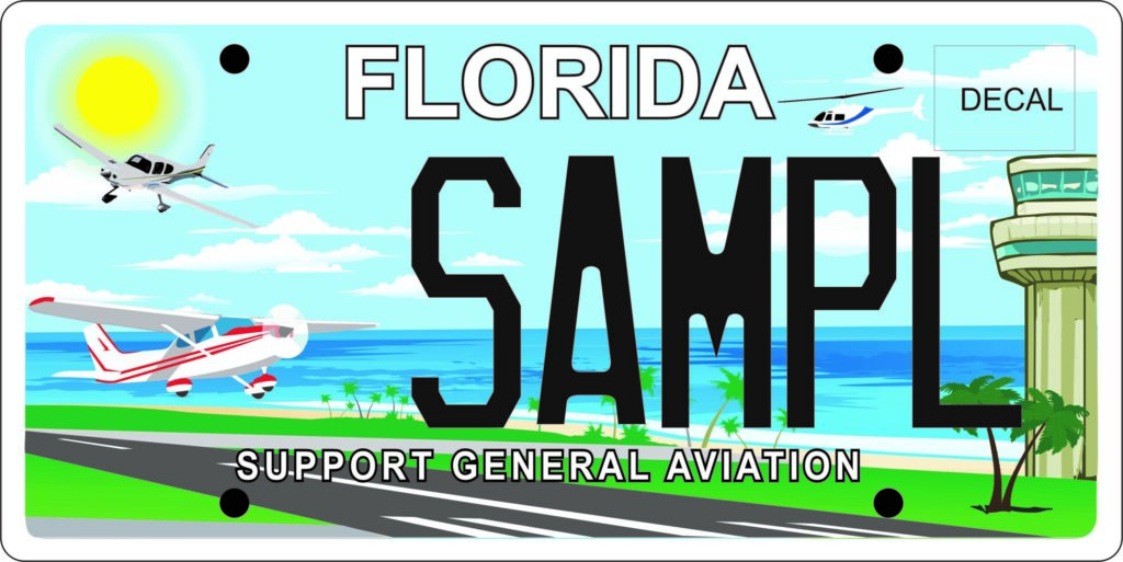 Florida currently has 129 public use airports and many more privately owned airports. It ranks second in the nation with over 20,000 registered aircraft and over 79,000 pilots. In addition, Florida has numerous aviation related schools, universities, and colleges that provide education in many sectors of aviation. We believe that Florida’s distinct position warranted the creation of the Specialty License Plate that recognizes and supports Florida’s General Aviation Community.