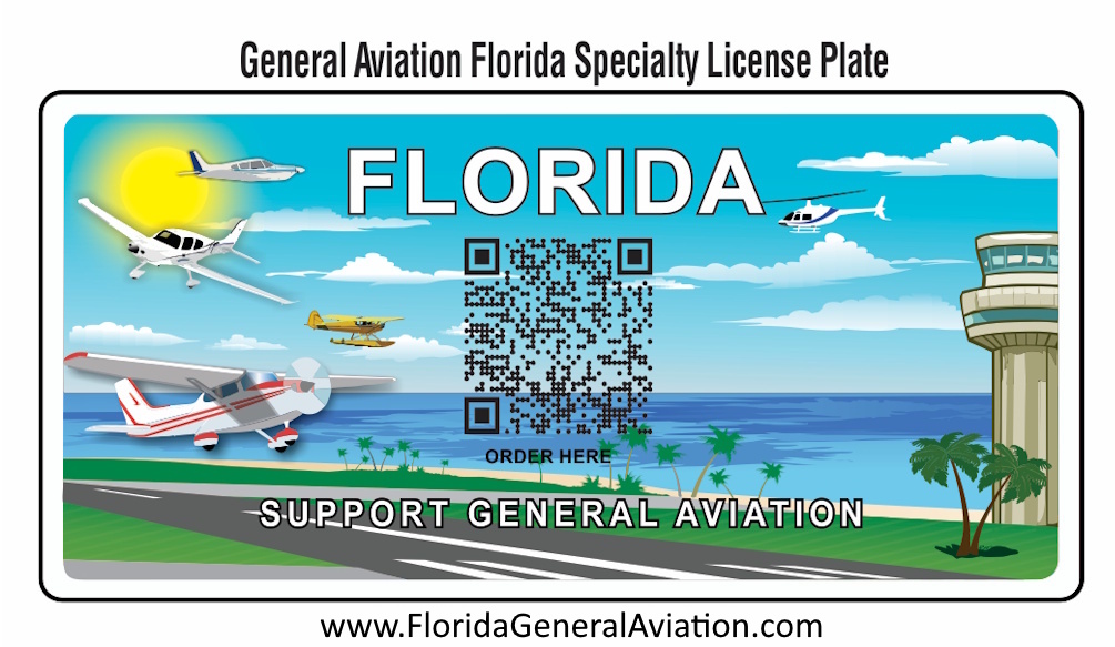 The State of Florida has numerous Specialty License Plates that recognize and support various organizations and programs. Missing was the one that broadly supports the future of General Aviation in Florida. The Support General Aviation Specialty License Plate provides recognition for the General Aviation community that contributes vastly to Florida’s economy. It also assists with the education of Floridians who seek careers in aviation. Proceeds from the sales of this Specialty License Plate will provide career opportunity positions related to aviation.