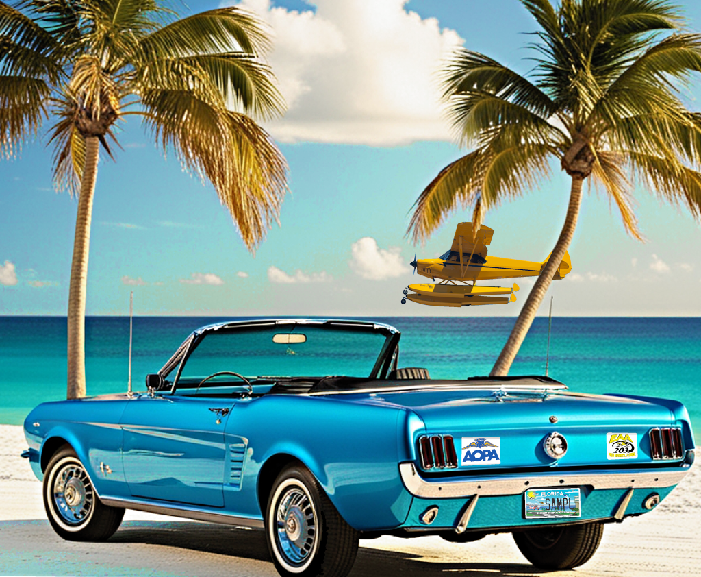 The New Support General Aviation B8R specialty license plate is now available for pre-sales voucher orders in Florida. The new plate is a beautiful, colorful and unique design that highlights general aviation aircraft in flight at an airport/beach setting. After the first 3000 presale vouchers are sold, the Florida Department of Highway Safety will begin making the actual specialty plates.
